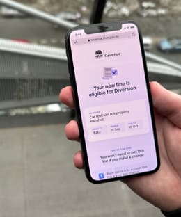 Mit Revenue NSW habe ich 2023 einen Bußgeld-Diversionsservice mitgestaltet, der Nachrichten, Briefe, QR-Codes und ein Webportal nutzte, damit Menschen nachweisen konnten, dass sie das Verkehrsproblem behoben hatten, für das sie belangt worden waren, und ihr Bußgeld dadurch zu einer Verwarnung herabgestuft werden konnte.
